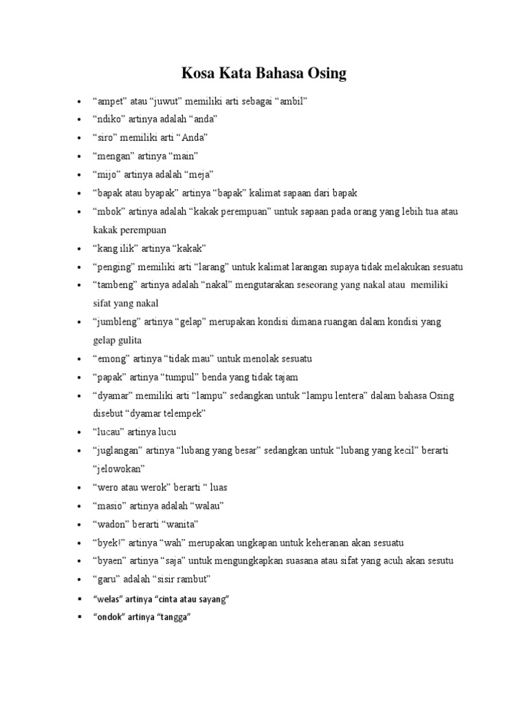 40 Daftar Lengkap Kosa Kata Bahasa Osing Banyuwangi Belajar Bahasa Online Lokal Local Languange